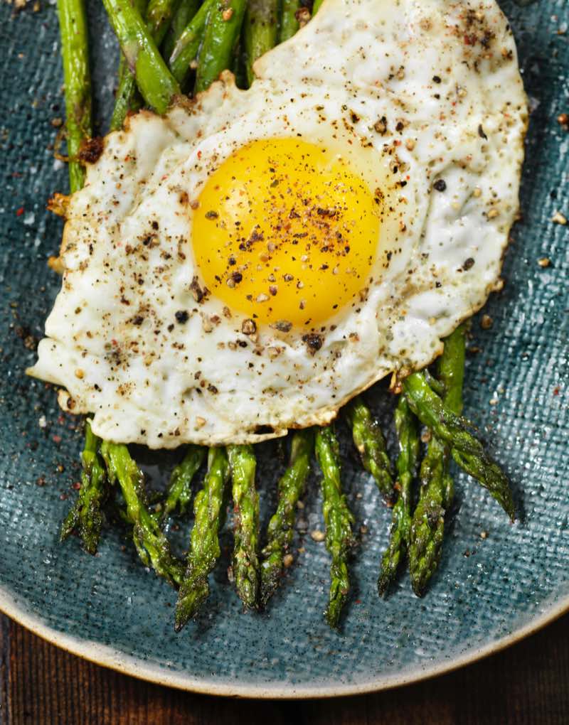 Chargrilled Asparagus with Crispy Hen’s Eggs & Herb Dessing